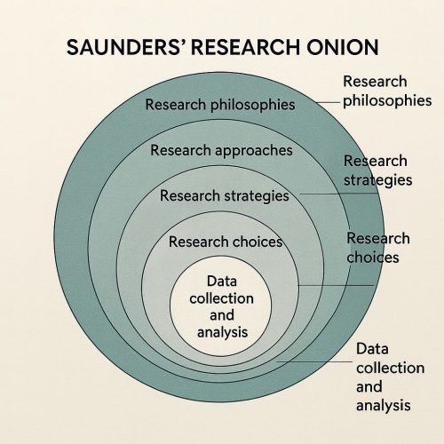 There are so many concepts, often given different names by different institutions, but you cannot go wrong with following a well-established systematic approach. One such approach is a very well-known concept of the research onion developed by Saunders (2007). If you do not have guidance from your supervisor on how to approach your methodology chapter, this is almost certain to give you at least a satisfactory start. The “onion” differs from quite complex diagrams, with many options, to more simple ones, with the most important options included. Below is such a simple example